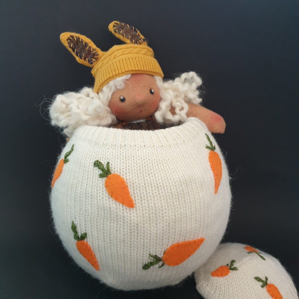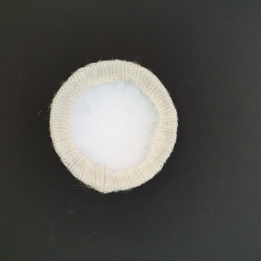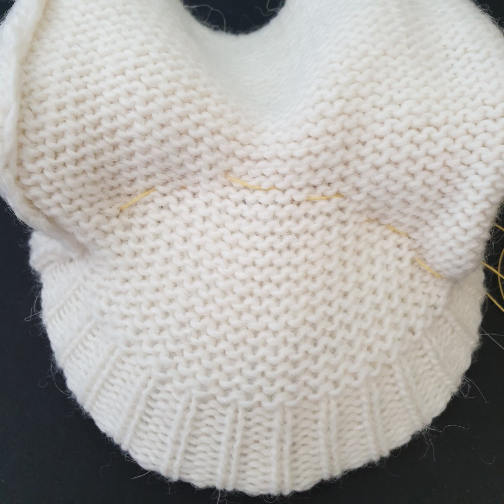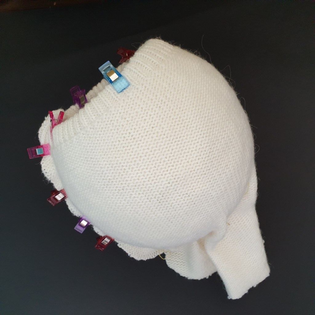 14. On procède de la même manière pour le chapeau de l’œuf, sauf qu’on utilise le bas d’une manche!